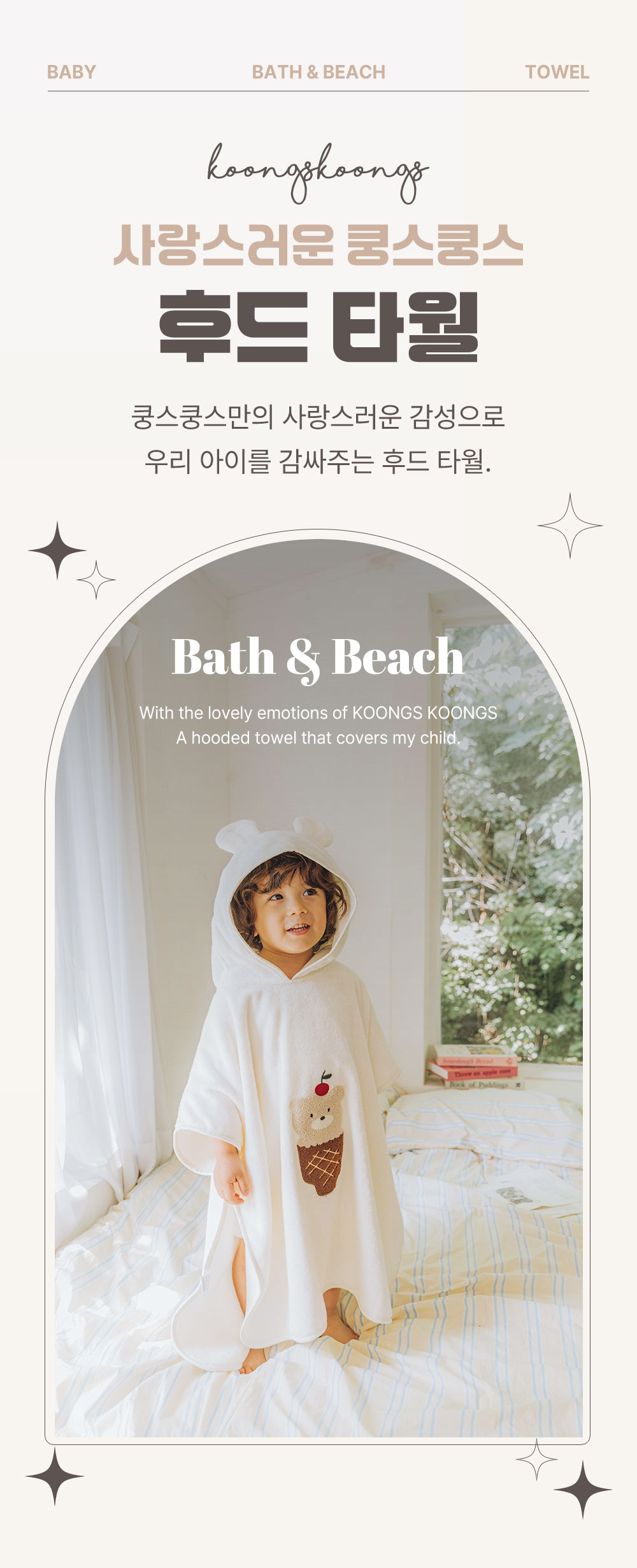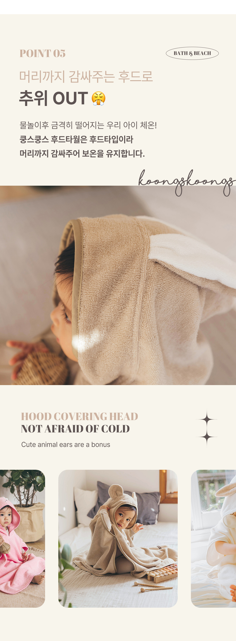 [Koongs Koongs] Ice Bear Double-Sided Bath Hood Towel Toddler Beach Robe Baby Shower Robe