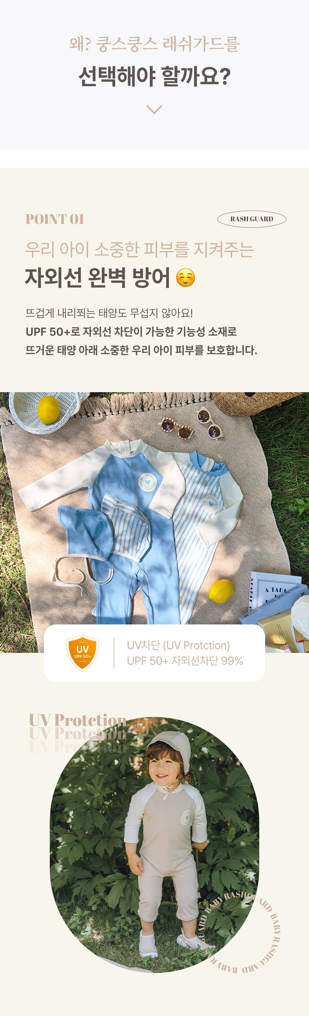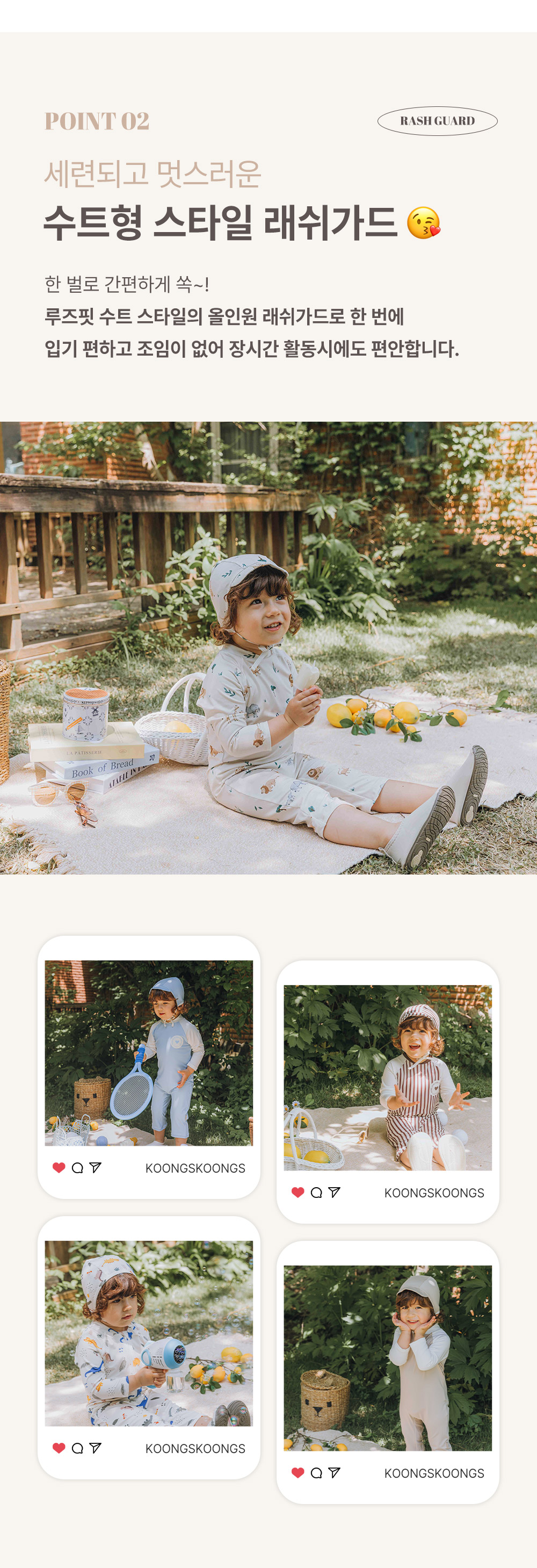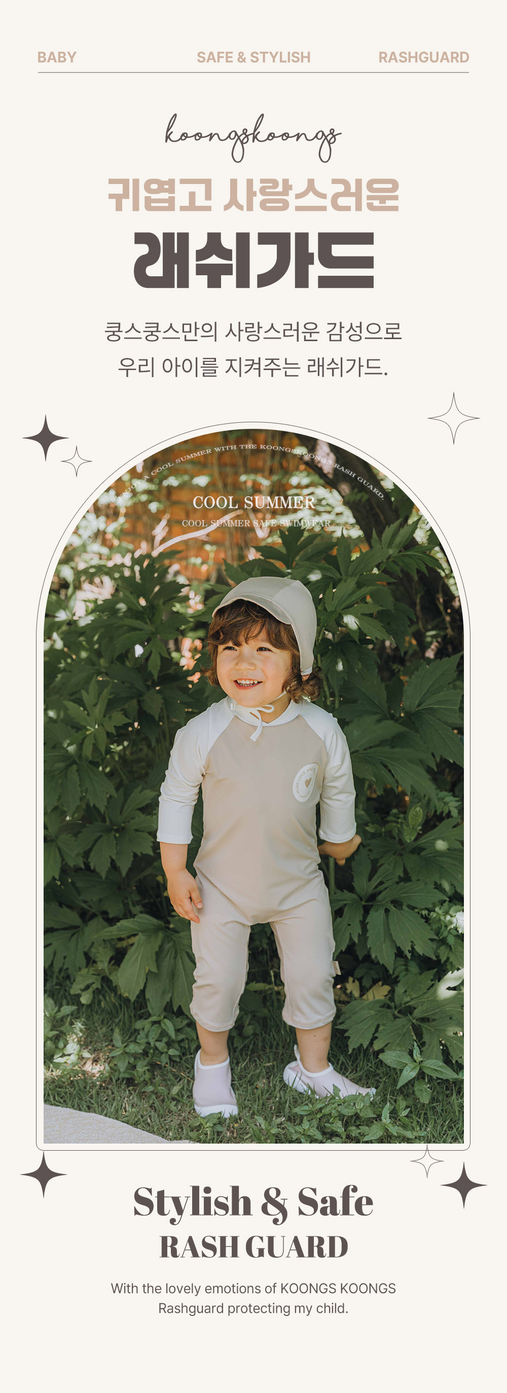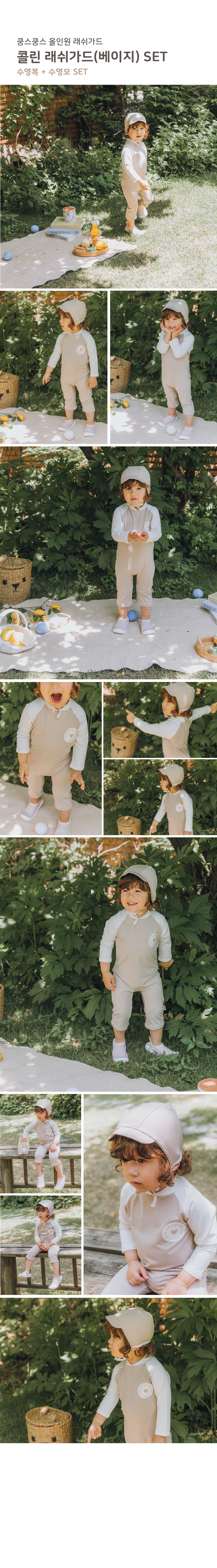 [UPF50+] Koongs Koongs [All-in-One] Colin (Beige) Rash Guard Set
