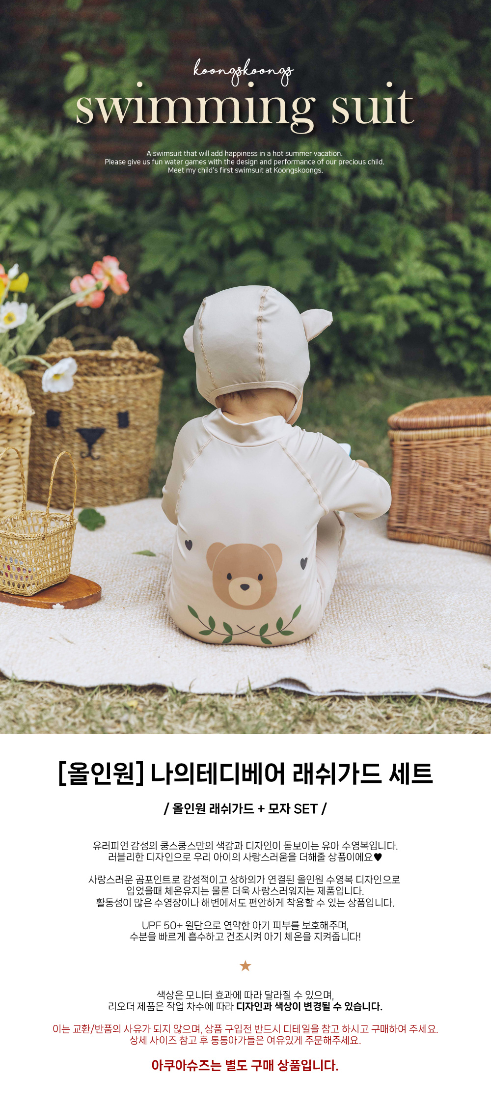 [UPF50+] Koongs Koongs [All-in-One] My Teddy Bear Rash Guard Set