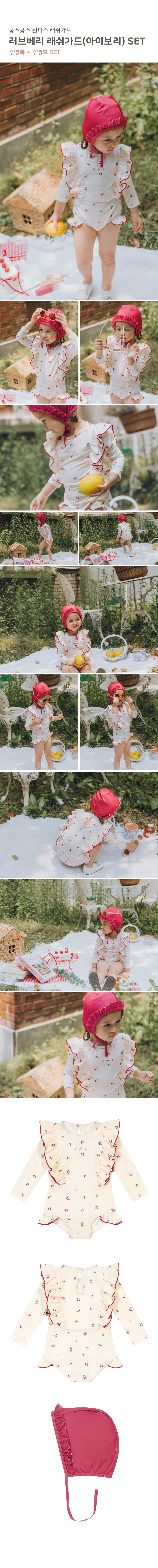 [UPF50+] Koongs Koongs [All-in-One] Le Cherry (Ivory) Rash Guard Set