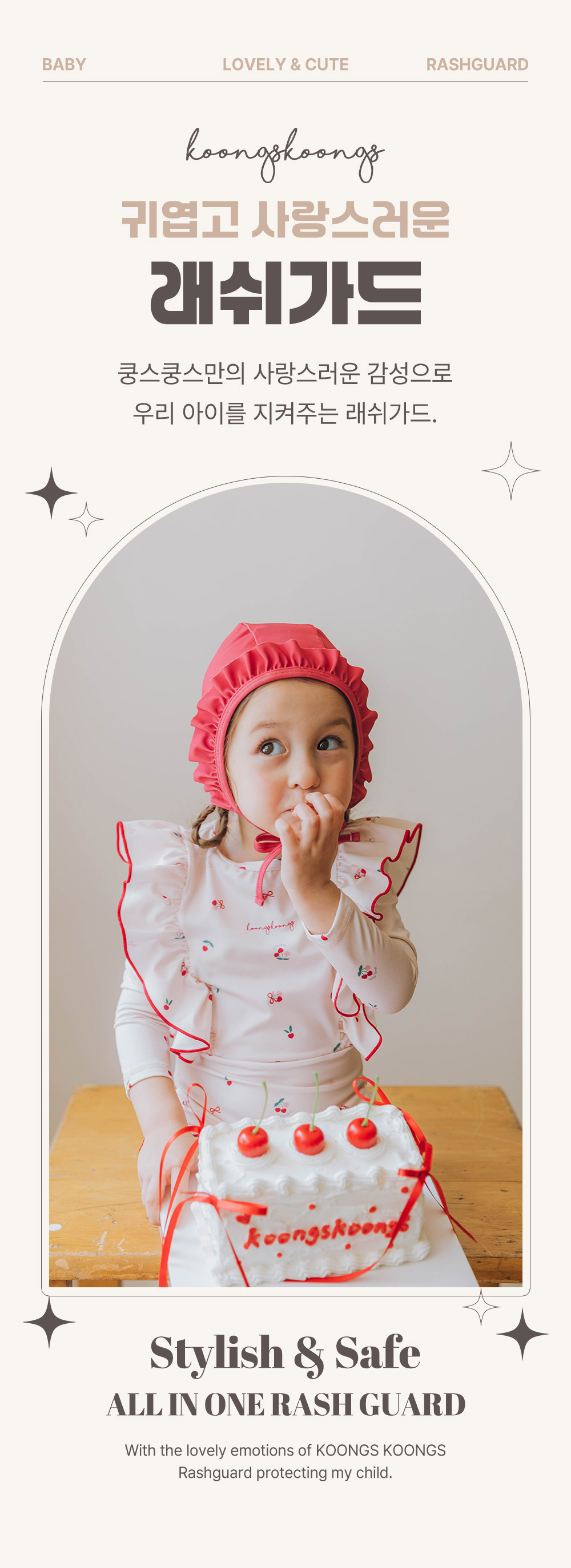 [UPF50+] Koongs Koongs [All-in-One] Le Cherry (Ivory) Rash Guard Set