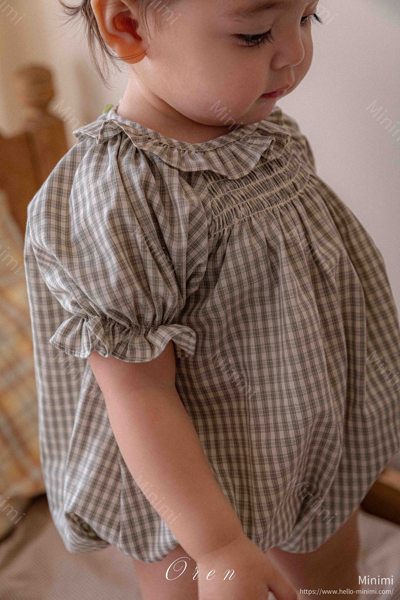French Check Smocked Bodysuit