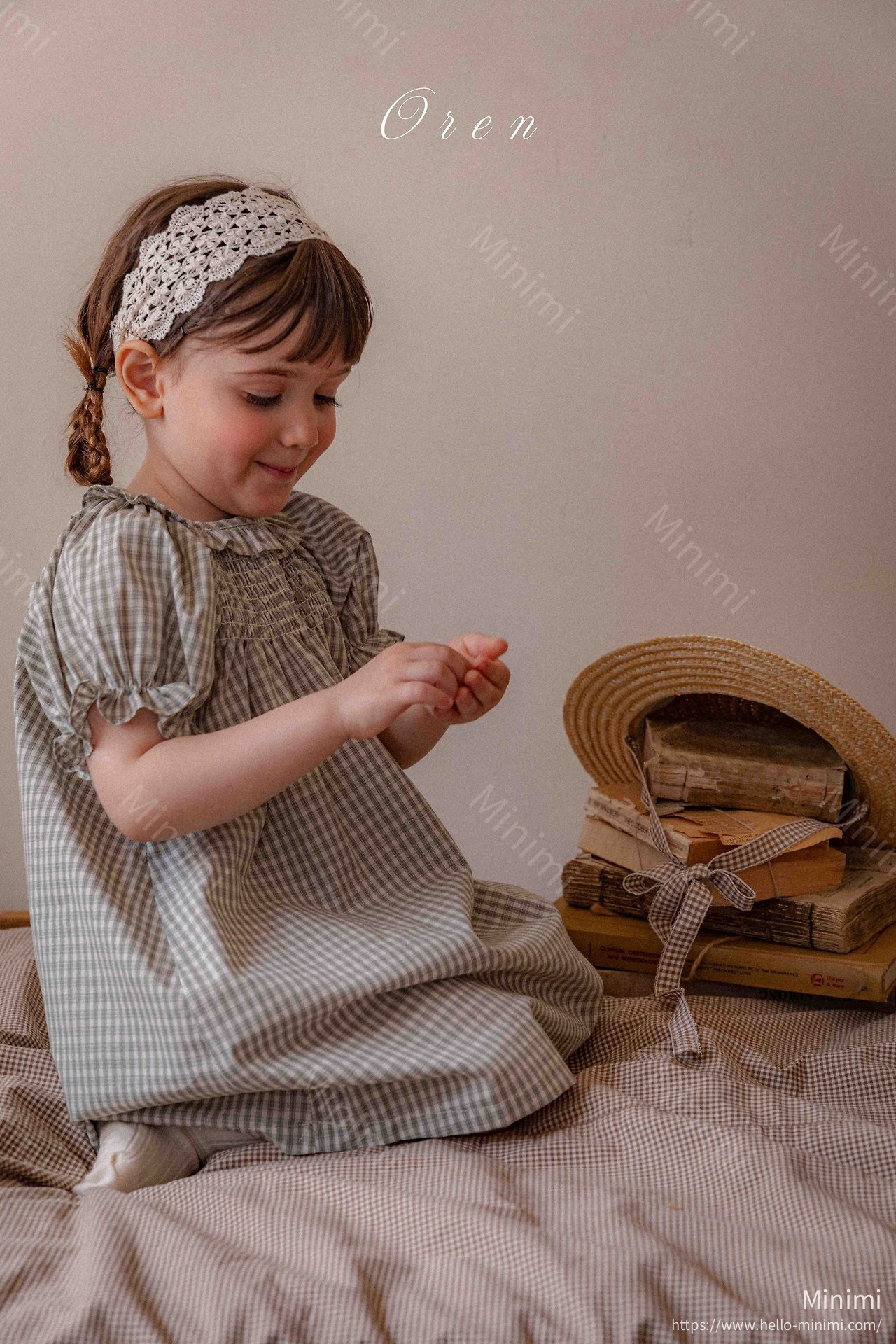 French Check Smocked Dress